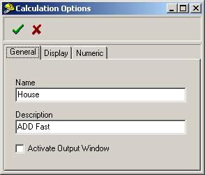 GeneralWe can change Calculation Name and Description. Also we can activate an output window private to this Calculation. Commands PRINT redirect their output to this window and not in Scratchpad's output window. When private Output Window is activated, it appears in the Edit/Execution form of the Calculation. |